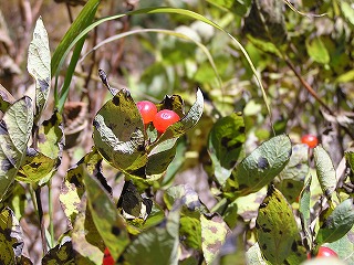 ふと横には千島ヒョウタンボクの実が可愛くイクラ然として |