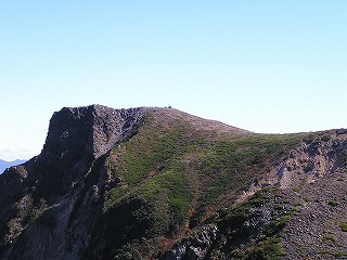 石室から桂月岳を望む。リュックを置いて頂上へ向かう |
