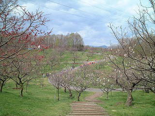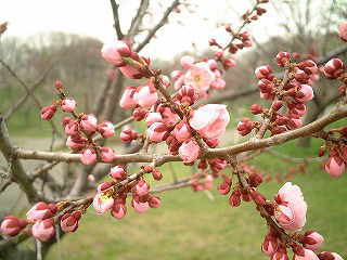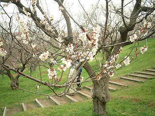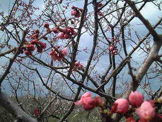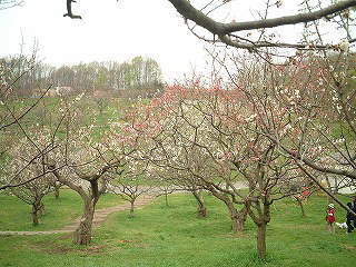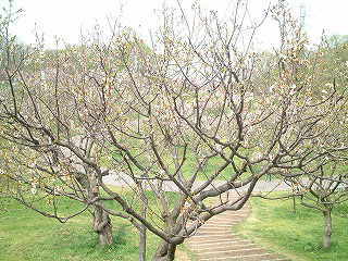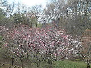 東側の丘から見た状況です。白梅は咲いているものもありますが・・・ | |