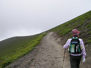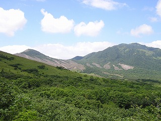 外輪山の内側は火山性ガス(亜硫酸ガスだろうか?)が発生している注意書き看板がある。 昔登った時はこの内側におりて昼食を摂った記憶がある。 |